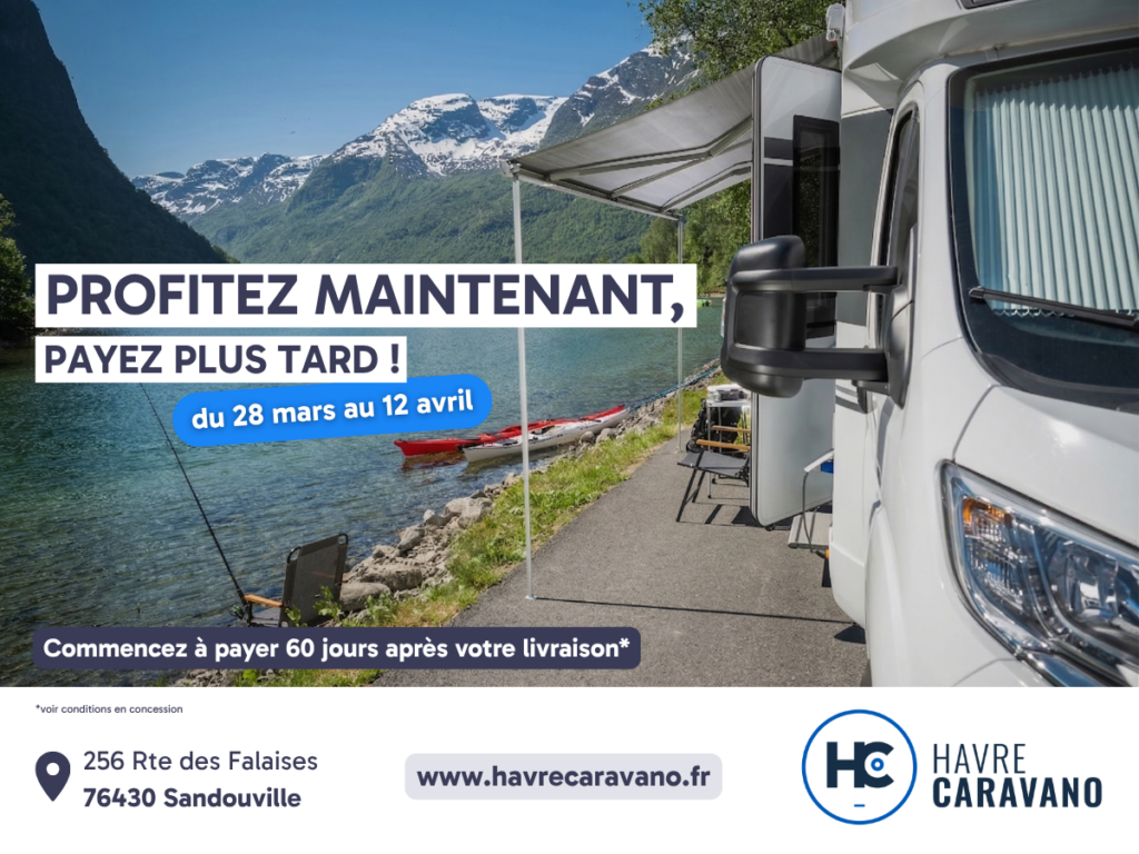 Chez Havre Caravano, nous savons que le financement est souvent le dernier frein avant de passer à l’achat. Cette formule vous permet de prendre la route dès le printemps, sans contrainte financière immédiate. Vous disposez ainsi de deux mois pour prendre en main votre véhicule, préparer vos premiers voyages et profiter pleinement de la belle saison — avant même le début de vos remboursements.